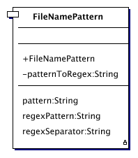 | FileNamePattern | A class of filename patterns.  A pattern consists of a sequence of primitive patterns separated by File.separator. |