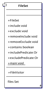 | FileSet | A class of objects that represent a set of files.  A FileSet represents a set of files which satisfy certain