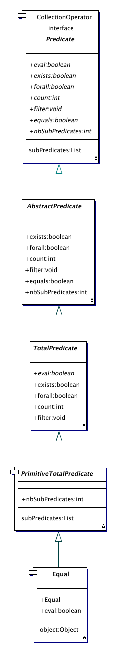 | Predicate | A class of predicates that evaluate to trueorfalsefor an object. The Predicate class is actually an implementation of the Strategy