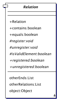 | protected abstract  boolean | isValidElement(Relation relation)Check whether or not the given Relation may be connected to this Relation. |